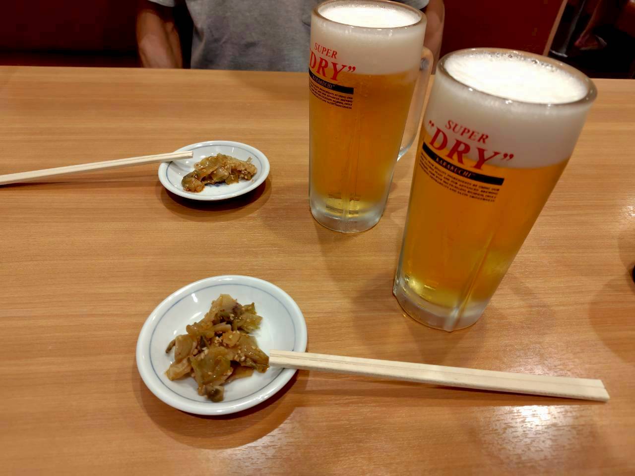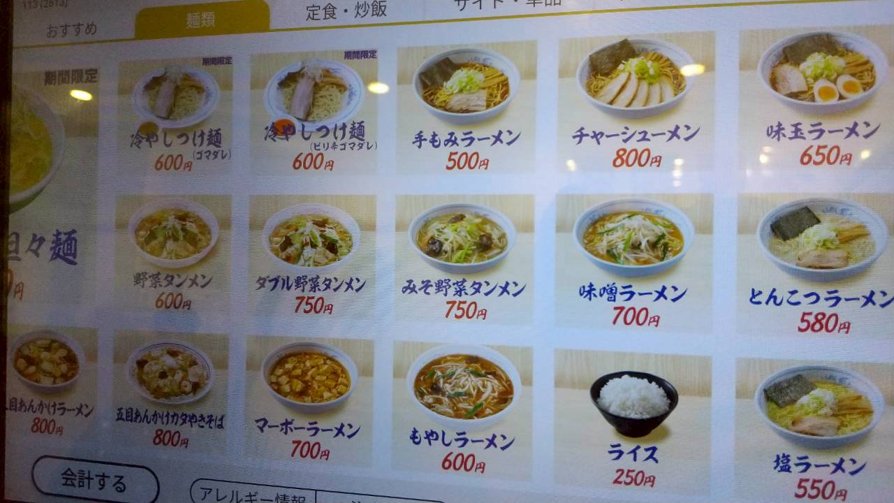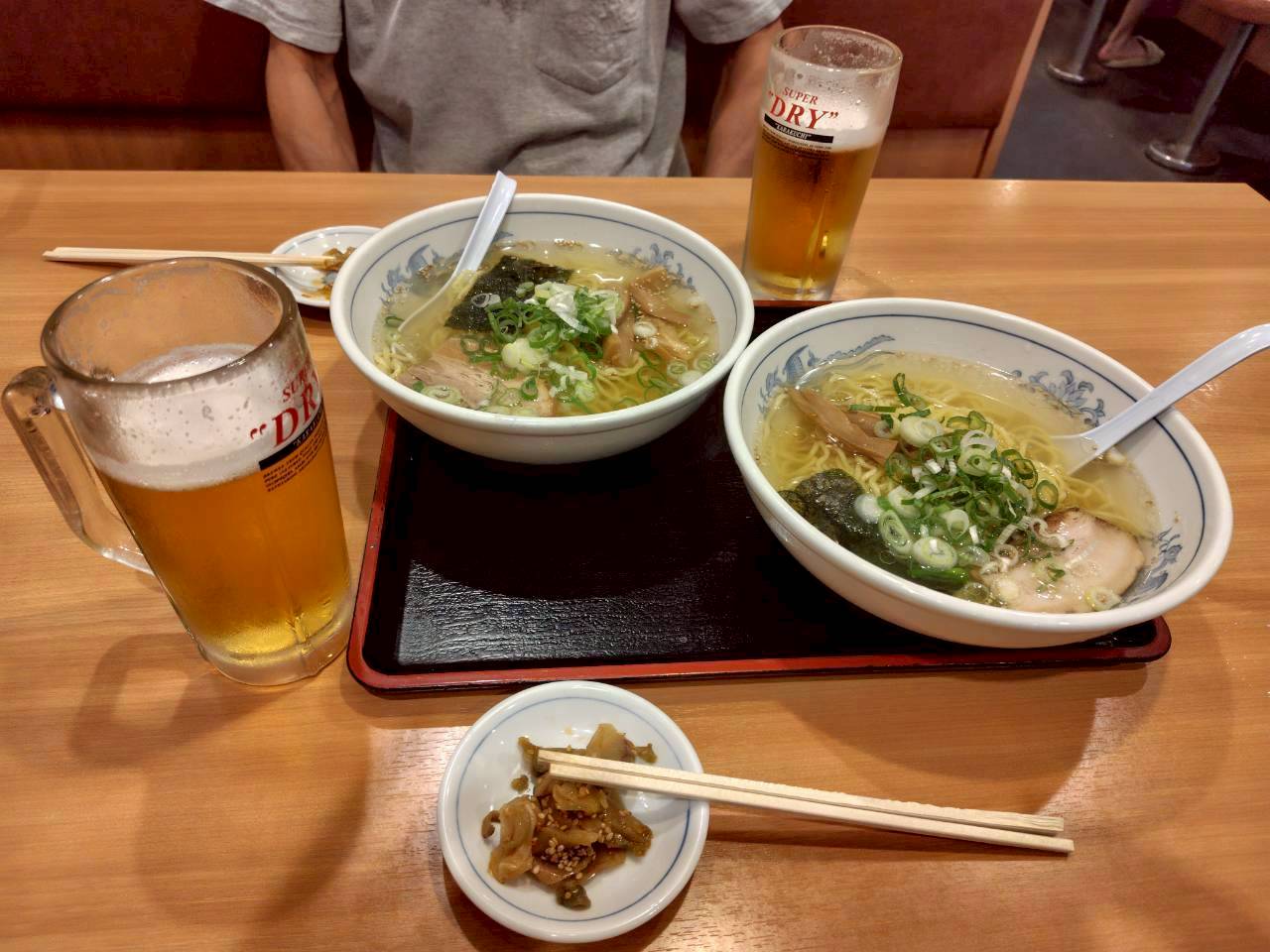 生ビール500円、塩ラーメン550円。