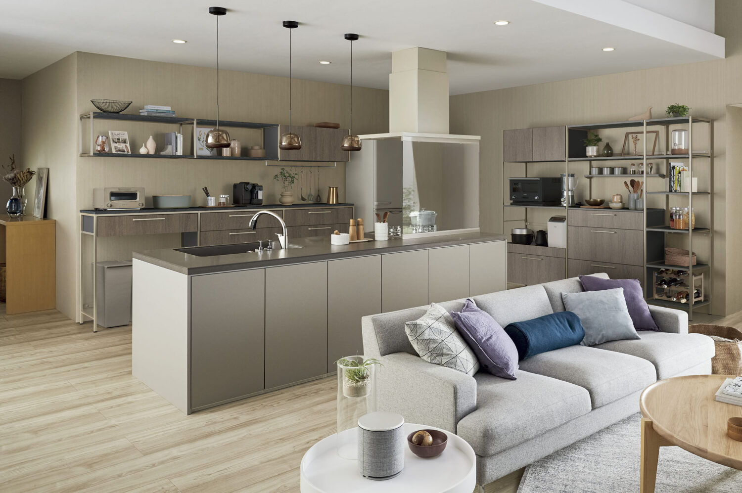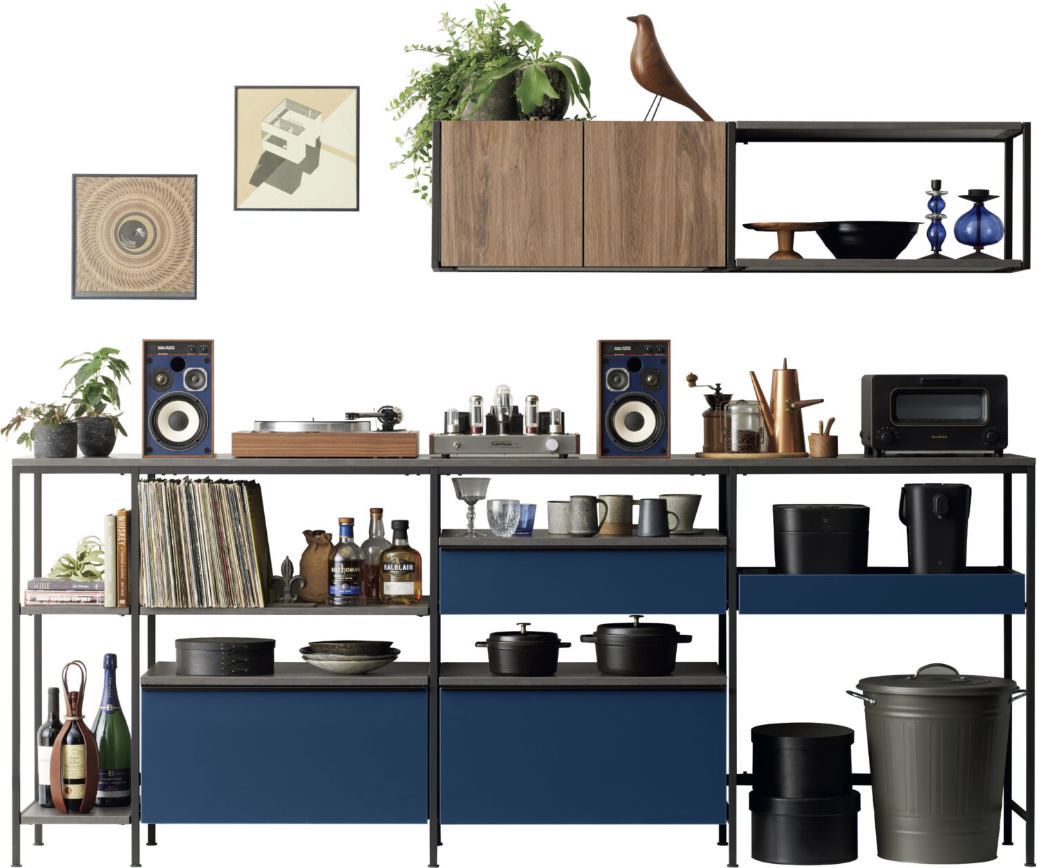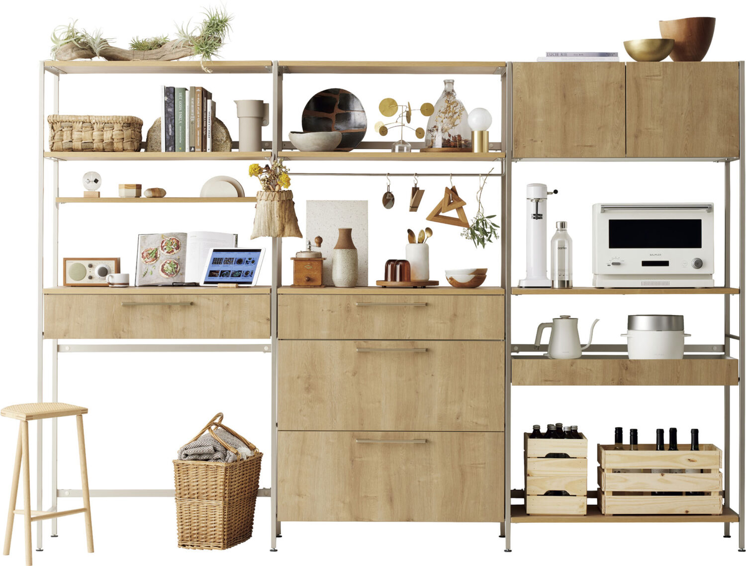 お気に入りの小物やこだわりのキッチン家電をディスプレイ感覚で収納できるので、キッチンまわりが美しく合理的に片付きます。