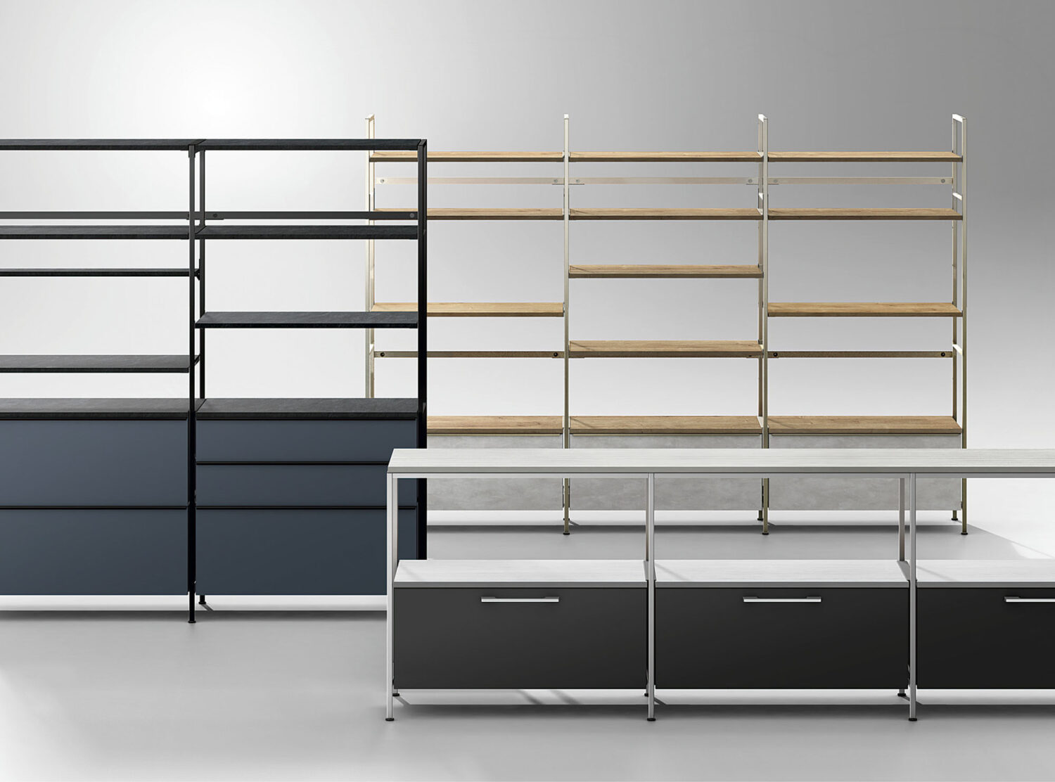 条件に合わせてサイズや棚位置をカスタマイズ、フレームや棚板も3色から選べ、豊富な扉カラーでお好みの収納に仕上がります。