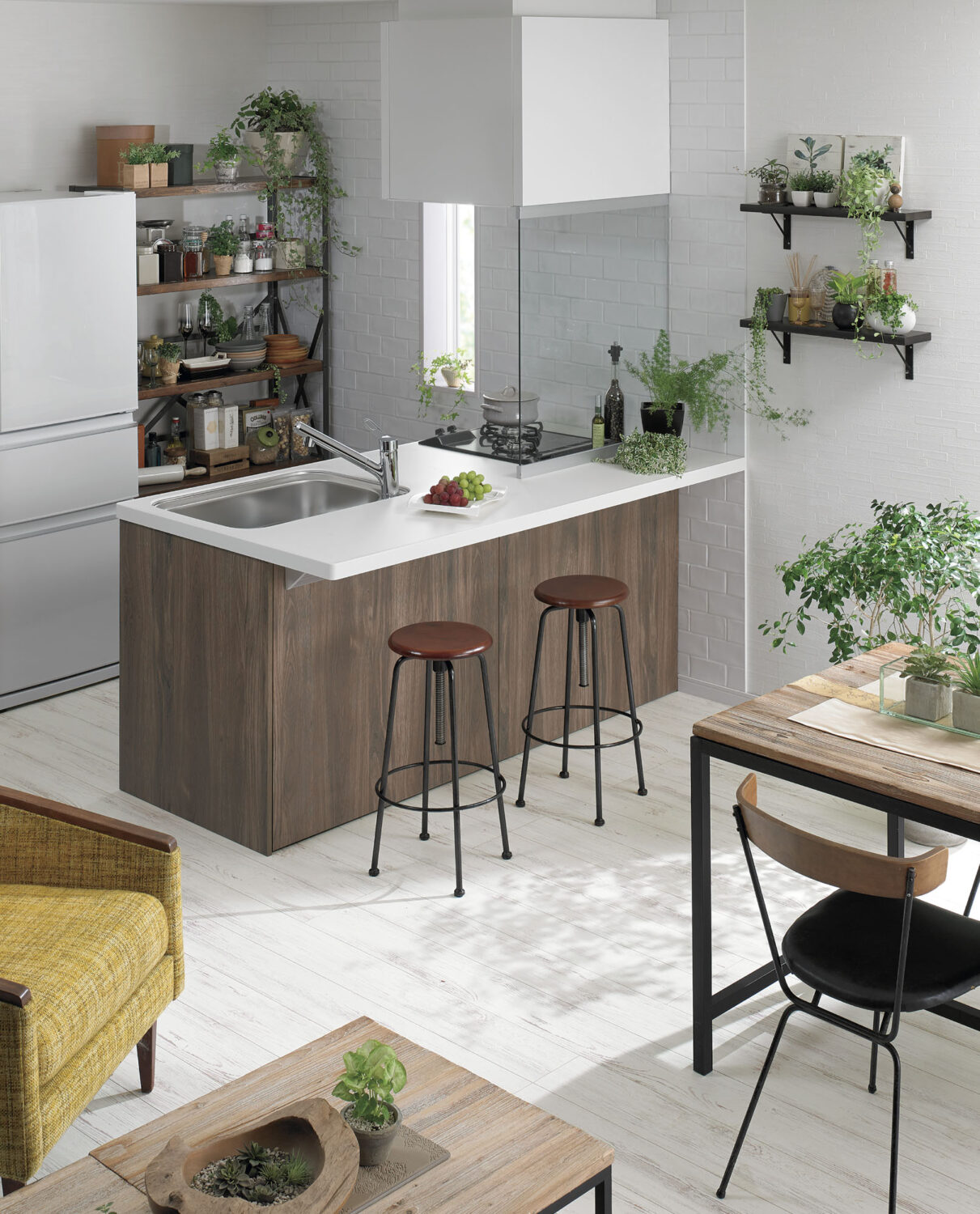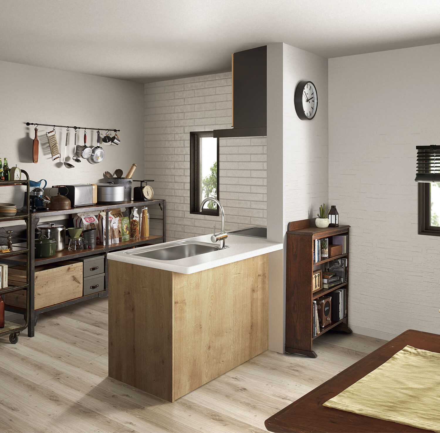 工夫がいっぱい、小さな間口のペニンシュラタイプ。パソコンや読書用の便利なカウンターとしてもお使いいただけます。