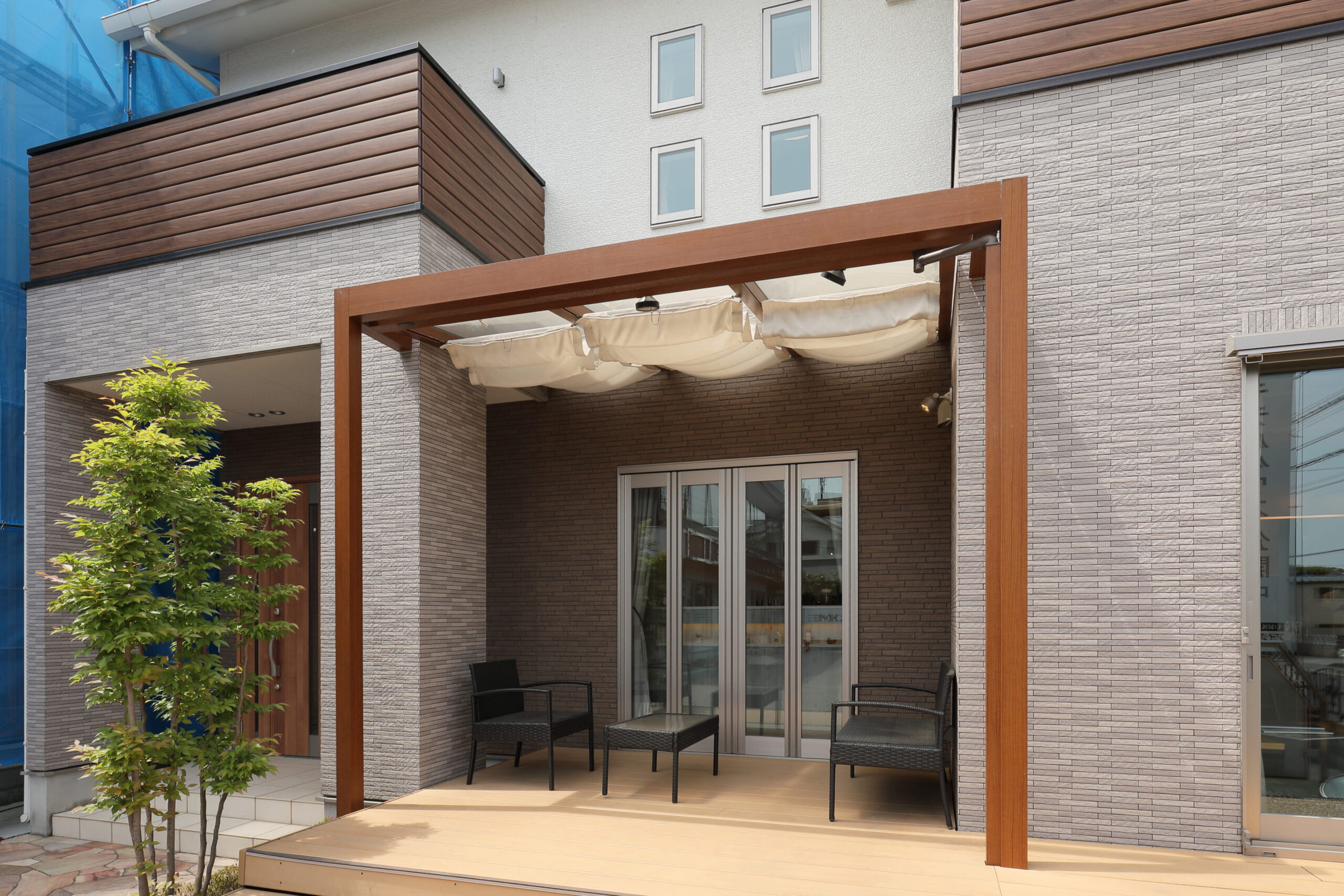 LDKから直接出れるウッドデッキは暮らしをより豊かにしてくれると主に外観のデザインをよりおしゃれに見せてくれます。